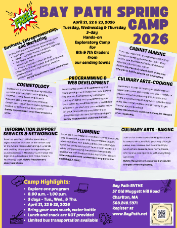 Bay Path Regional Vocational Technical High School will be undergoing a Group B monitoring review that addresses special education teacher and related service personnel licensure and professional development; parent, student, and community engagement, including compliance with Child Find requirements; facilities and classroom observations; implementation and oversight of Individualized Education Programs (IEPs); time and learning, and equal access. For additional information please also see Integrated Monitoring Parent and Family Orientation.